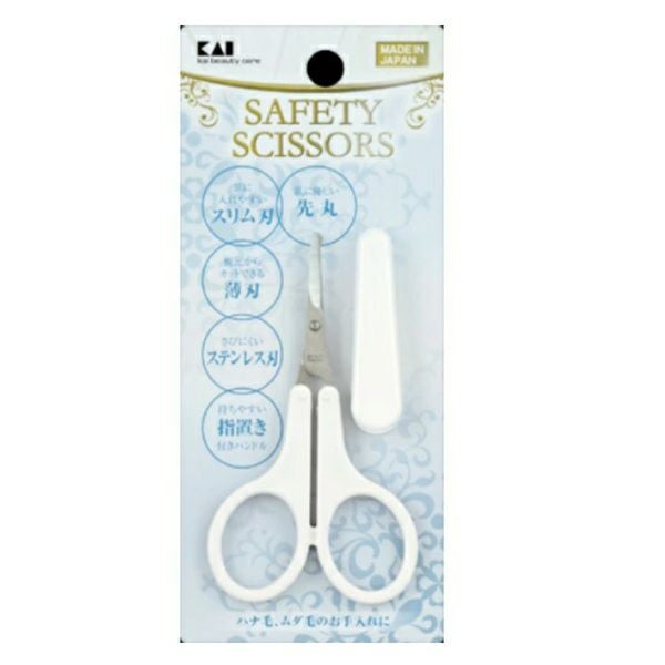 短いムダ毛もお手入れしやすい刃先の厚みが薄いタイプのセーフティハサミ。鼻毛のお手入れに適した先丸加工。女性向けパッケージ。