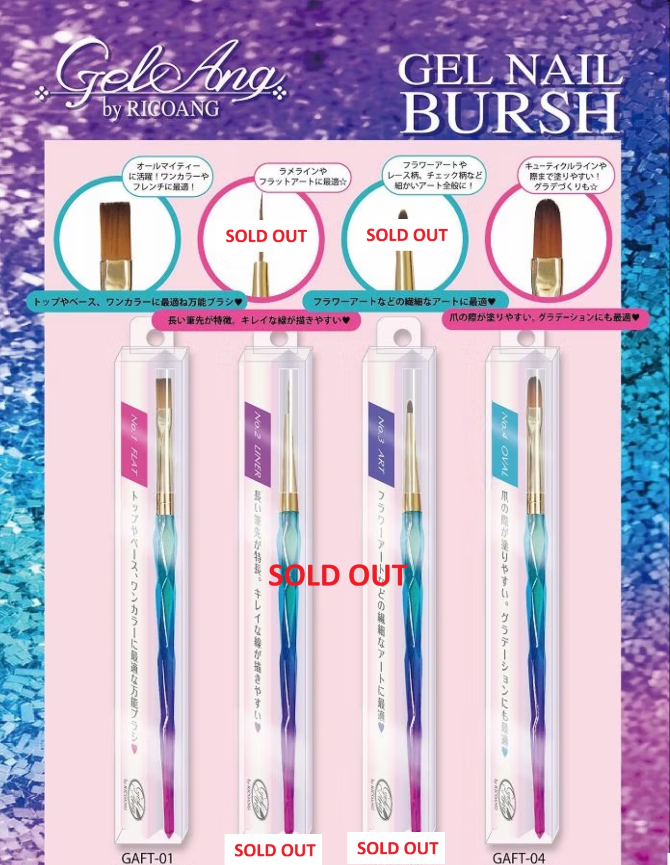 グリップが滑りにくい おしゃれな本格ブラシ ジェルネイルブラシ