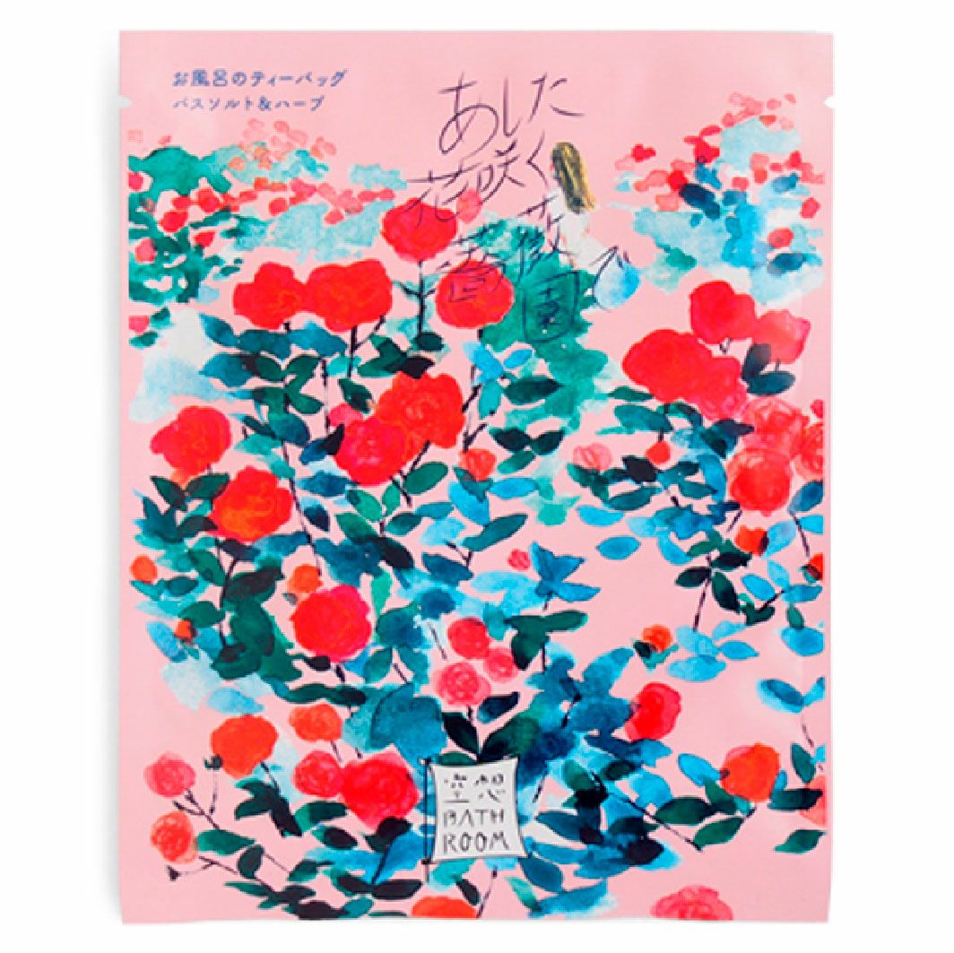 [あした花咲く薔薇園で] バスソルトに6種の天然由来美肌成分を加えたバスバッグ。 厳選した6種のなめらか美肌成分配合で湯上り素肌にツヤとはりを与えます。