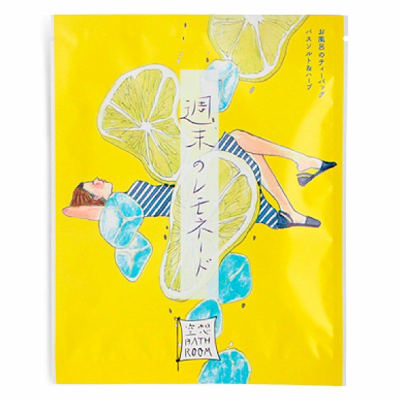 本の装丁のようなデザインで楽しむ『空想バスルーム』。バスソルトと数種の天然由来成分を詰め込んだナチュラルなバスバッグで素肌も美しく。 [週末のレモネード] バスソルトに6種の天然由来美肌成分を加えたバスバッグ。 厳選した6種のすっきり美肌成分配合で湯上り素肌をひきしめます。 ●天然ドライハーブ&フルーツ:レモン果皮・レモングラス葉 ●天然由来成分:レモン果汁・ハチミツ ●天然精油:レモン果皮油・レモングラス精油